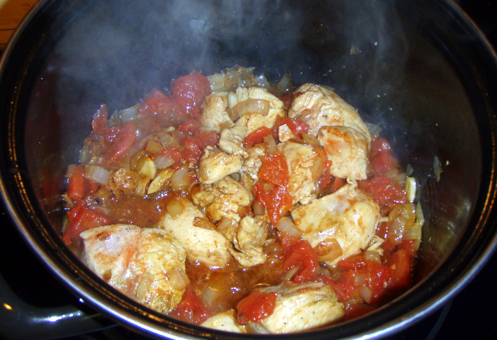 Then add tomatoes and deglase the pan with the juices from tomatoes.